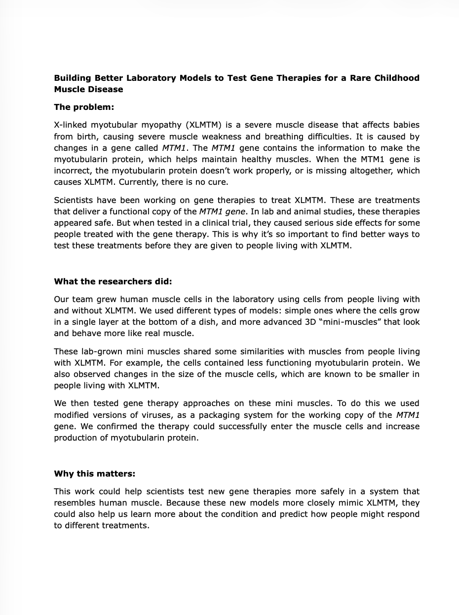 Building Better Laboratory Models to Test Gene Therapies for a Rare Childhood Muscle Disease